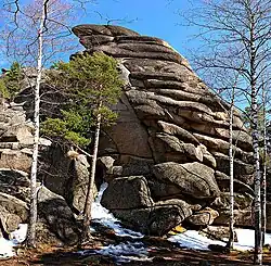 - 🌍 Stolby Nature Reserve (Заповедник Столбы, literally: Pillars) (take a bus to Hotel Snezhnaya Dolina (15 km southwest of the city center) and then walk up the 7-km trail or take the chairlift of the ski-resort (Фуникулёр; 250 руб)), ☏ +7 391 261-51-61. Stolby covers 470 km² in area, with many extraordinarily-shaped volcanic rock formations up to 100 m high. There are marked trails and an online map in Russian. All information on signs is in Russian. The chairlift trail is officially closed in 2020; others from the main entrance are open.