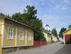 The old town is a lovely preserved grid of wooden houses on a hill slope towards the bay cutting the town in two. There is also a beautiful stone church with a separate wooden tower. There's also a little, narrow alley called Kattpiskargränden/Kissanpiiskaajankuja ("cat spanker's alley"), which is among the most photographed street signs in Finland.