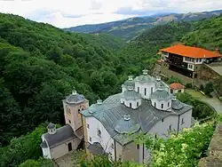 - 🌍 Osogovo Monastery (Осоговски Манастир). Established in the 12th century, the oldest parts of the monastery today date from the 14th century, including the smaller of its two churches, dedicated to the Holy Mother of God. This church features one main dome and a couple smaller ones above the sides. During Ottoman rule, the church was briefly converted to mosque, though it soon became a church again. During the Austro-Ottoman War of 1690, the monastery was to be destroyed by the Ottomans as punishment to the locals for siding with the Austrians during the war. Legend claims that the Ottomans spared the church after becoming overpowered by some spiritual force. The larger, three-nave church, was built in 1851 by noted builder Andrej Damjanov. It has 12 cupolas, which represent the 12 apostles, and porches on its southern and western sides. Most of the church's interior and cupolas were painted by Dimitar Andonov Papradiški. In addition to its history and architecture, the monastery is also a popular tourist destination for its position on Osogovo Mountain.