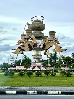 - 🌍 Teapot. A large teapot monument in the middle of the roundabout of Jalan Pandan Lima, Jalan Singa Menteri, Jalan Seri Maharaja and Jalan Setia Diraja.