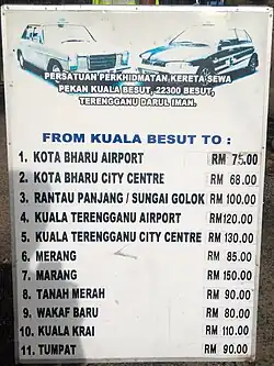 - From Kota Bharu, there is a local bus service that leaves roughly every hour on the hour (City Liner #639) (RM6, 1 hr 40 min) and an SKMK express bus (RM7.50) that leaves three or four times a day. Both stop at the Kuala Besut bus terminal. It's also easy to arrange a share taxi ride RM80 - virtually any guesthouse or hotel in Kota Bharu will organise this. You can also book the mini van (Doremi Travel and Tour, telephone no +60 97479663) from Kota Bharu to Kuala Besut. You are required to make a reservation in advance, especially during the May-September high season. The fare is RM35 per person.