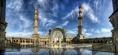 - π Federal Territory Mosque (Masjid Wilayah Persekutuan), Jalan Duta, β +60 3-6201 8791, fax: +60 3-6201 8790. This large mosque, which was opened in 2000, was partly inspired by the Blue Mosque in Istanbul. The mosque's website is in Malay only. Statistics on the number of tourist visits are given, so it is clearly possible to visit the mosque outside of prayer times, but the website doesn't seem to make clear what arrangements would be needed, so it might be a good idea to call, especially if you're a non-Muslim interested in seeing the interior outside of prayer times. If you are a Muslim and would like to pray at the mosque, prayer times are prominently displayed on the website.
