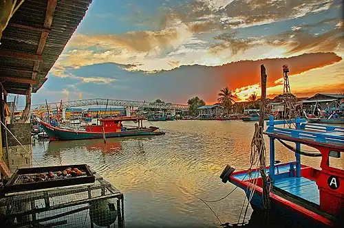 Kuala Perlis is only a couple of kilometres from the Thai border and very close to the Thai town of Satun. However, national parks on both sides of the border create a green barrier and there is no a direct road between the two towns.