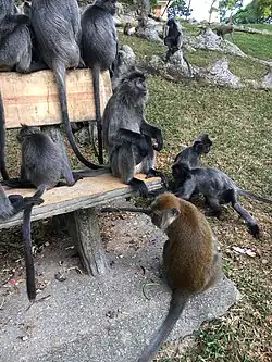 The Chinese nicknamed the hill as "Ma Lau San" which loosely translated as Monkey Hill. This is because the hill is swarmed by several families of Silver Leaf Monkeys and Long-Tailed Macaques. Visitors come in droves to feed the monkeys with peanuts and vegetables that can be purchased from vendors around the area. The monkeys are generally quite gentle. However do take caution as these animals are born in the wild and may be dangerous if provoked.
