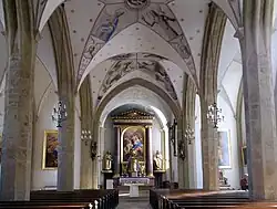 - St. Vitus' church. The original church dates back to 788. The choir of the present day church was built around 1390 to 1420, with the three-nave hall was built around 1500. In the 17th century, the interior was redone using baroque aesthetics. There are many frescoes: some dating back to the 15th century, and some modern.