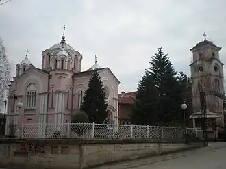 - 🌍 Church of Saint Nicholas (Црква „Св. Никола“). This large, white church is surrounded by arcades and has a rich interior with galleries, frescoes, and furniture. According to an inscription on the south entrance, it was built in 1851 on the same site as a prior church (with the same patron saint) in the Varoš neighborhood. Designed by noted church architect Andrej Damjanov, it is the main church of the city of Kumanovo.