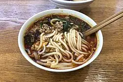 • Insane Wontons (疯狂馄饨) (near YunDa North Gate; YuanXiLu 圆西路86; across from the YuanTong Movie Theatre, there is also one near the Hump at 人民中路17号昆明走廊一期1D1-FC4). A delicious insanely spicy dumpling (wonton) soup with other (including non-spicy) options as well. Try the Sichuan Spicy Wontons (MaLa HunDun) 麻辣馄饨 or the Strange Flavor Wontons (GuaiWei HunDun)怪味馄饨 for the two best.