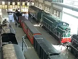 Kunming's third rail terminal, 🌍 Kunming North (Kunmingbei) Station. OSM directions, the main hub of Yunnan's once-extensive metre-gauge network, is mostly of interests to rail fans. As of 2016, most of its building has been converted to a railway museum (see below), while the working passenger station occupies one of the rooms of the building. From there, 3 trains a day run to destinations within Kunming's metropolitan area, thus offering you an inexpensive way to ride a meter-gauge train.