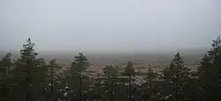 Different parts of Kurjenrahka National Park have very different character. The park consists of rather flat bogs surrounded by hilly forests (no steep or high ascends on the trails, few anywhere), with two lakes, four more in the Vaskijärvi area. Some of the forest is in the flat lowland, partly wetland forest. Much of the raised bog is forested, with a border zone of sparsely growing small trees towards wetter areas.