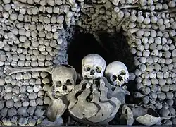 - 🌍 Ossuary (Kostnice), Zamecka 127, ☏ +420 327 561 143, info@kostnice.cz. Apr-Sep: daily 07:00-18:00; Oct-Mar: daily 09:00-17:00; Nov-Feb: daily 09:00-16:00. This impressive bone church, is better known as the Sedlec Ossuary. The beginning of its story date back to 1278, when Henry, the abbot of Sedlec was sent to the Holy Land. On returning, he brought soil from Golgotha and sprinkled it on the ground here. As a consequence, the burial ground was considered holy and became extremely popular. In 1511 a chapel was constructed to house the bones from abolished graves. The chapel is open to the public, and contains the bones of about 40,000 people, arranged by František Rint in 1870. Rint's work includes an enormous chandelier including every bone in the body, and a crucifix style arrangement near the main altar. 160 Kč adult, 80 Kč student, combined ticket 350 Kč (kostnice+St Barbara). Updated Feb 2023.