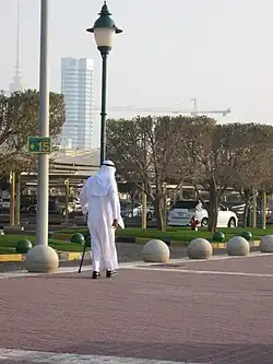 Call taxis (aka hotel taxis) are all-white with company decals on the doors, and they can be found lurking around major hotels. Usually ordered by phone, these are usually fairly nice and will take you where you want to go with a minimum of fuss, but charge steeper prices: KD 3 is the standard fare for most trips around town, while going to/from the airport is KD 5. However, if you manage to catch one on the road (away from the watchful eye of the dispatcher), they may cut you a discount. Kuds Taxi, ☏ +965 241-3414, is one of the largest operators.