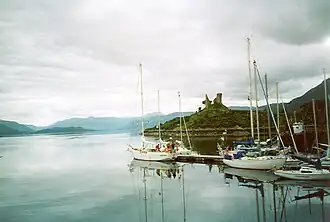 Kyleakin (Gaelic: Caol Γcain) is a village on the island of Skye, traditionally a ferry port. It has become quieter since the Skye Bridge replaced the ferry from the mainland, but is an attractive small place worth a stop. In 2011 the population was around 300.