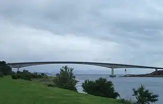 - π Skye Bridge: see Kyle of Lochalsh for the story of this bridge. There's a sidewalk so you can walk or cycle across. Midway is Eilean BΓ n, with the Gavin Maxwell Cottage and lighthouse.