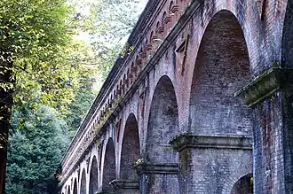 - 🌍 Nanzenji Temple (南禅寺), Fukuchi-cho, Nanzenji, Sakyo-ku (nearest bus stop: Nanzenji/Eikando-michi, route 5). 08:40-17:00 (until 16:30 from Dec to Feb). with its distinctive two-story entrance gate (sanmon) and aqueduct, is another popular temple in Kyoto, but its larger size means that it doesn't seem as crowded as many of the others. Nearest bus stop: Nanzenji, Eikando-michi. Nearest subway station: Keage. Open daily, 08:30-17:00. Walking around the temple complex is free, including the unusual Meiji-era aqueduct that wouldn't look out of place in Italy. There are three regions of Nanzenji that you can pay to enter: Sanmon - the two-story main gate to Nanzenji Temple charges ¥500 for admission, and offers pleasant views over the surrounding area of the city. Nanzen-in Zen Temple - a small, but relaxing temple and moss garden behind the aqueduct, dating back to the 13th century, charges ¥300 for admission, and is probably only worth it if you have a particular interest in Zen Buddhism. Hōjō - the abbot's quarters, is a more interesting building, with a small raked gravel garden and some impressive paintings on the sliding doors of the buildings. ¥500.