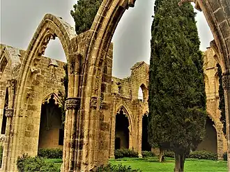 - 🌍 Bellapais Abbey, Zafer Cd (6 km southeast of town). Daily 08:00-18:00. A monastery founded in 1197 by the Canons Regular of the Holy Sepulchre after they fled Jerusalem. The main building you see now was built in the 1270s and the cloister and refectory circa 1330 by King Hugh IV of Cyprus, who resided here. The place was ransacked by the Genoese in 1373 and wrecked by the Venetians in 1489. When the Ottomans took control of Cyprus they handed it over to the Greek Orthodox community, who used it as a parish church. Pockmarks in the refectory walls are from British soldiers enjoying food fights, only with pistols instead of potatoes and stale buns. 20 TL.