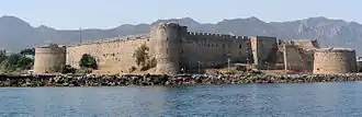 Kyrenia (Greek: Κερύνεια Keryneia, Turkish: Girne) is the chief port and tourist resort of Northern Cyprus. Its old centre is dominated by the castle over the harbour, built by the Venetians in 1540. The city in 2019 had a population of 45,881, with as many again in the resort strips that extend for 20 km on either side.