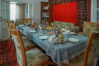 When offered tea, you might be asked how strong you want it. Traditionally, Kyrgyz tea is brewed strong in a small pot and mixed with boiling hot water to your desired taste. If you want light tea, say 'jengil chai'. If you want your tea strong and red, 'kyzyl chai'. You might notice that they don't fill the tea cup all the way. This is so that they can be hospitable and serve you lots of tea. To ask for more tea, 'Daga chai, beringizchi' (Please give tea again). Your host will happily serve you tea until you burst. So once you've truly had your fill and don't want to drink any more, cover your cup and say, 'Ichtym' (I've drunk). Your host will offer a few more times (and sometimes will pout if you say no), this is to make sure that you are truly satisfied. Once everyone at table has finished drinking tea, it is time to say, 'Omen', and hold your hands out palms up and then brush the open palms down your face.