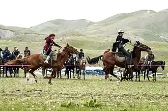 The classic way to see Kyrgyzstan is on the saddle of a horse, as the Kyrgyz are famous horsemen dating back to the days of Genghis Khan. There are several tourist agencies that arrange horse trekking. It is said that all Kyrgyz are born on a horse, although with growing urbanisation that seems to be less common. If you are hiking some trail which is also frequented by horseback riding tours and tired of walking, you can easily "hitch-hike" guides with empty horses for much less money that a tour costs. Before paying for a ten days horseback riding tour, it is better to try it for a few hours or a day—if you are not used to ride a horse, a longer ride might cause your body to be in pain for several days during and after a long ride. Many people complain about a painful experience even after just one day of riding.