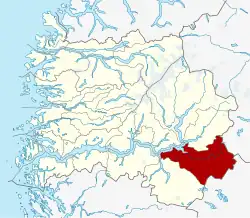 Lærdal is a village, a valley and a district in Sogn og Fjordane. Lærdal village is situated at the end of the Lærdal valley. Lærdal is home to Borgund stave church, one of the best preserved and typical stave church of its kind. The valley is one of the major valleys of the county and cuts deep into the central uplands from Sognefjorden. Lærdal is known for its modest rainfall, fine salmon river and intensive horticulture along the valley floor. Lærdal village is protected by law because of its fine collection of old wooden buildings. Because of its easy access to Eastern Norway by road and to Bergen and Western Norway by boat, Lærdal has always been a hub. The main road between Oslo and Bergen runs through Lærdal, including the world's longest road tunnel, the 25 kilometer long Lærdal tunnel.