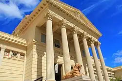 - 🌍 Cemetery of La Plata, intersection of Avenue 31st, 72nd and Diagonal 74th (in the southern tip). Established in 1886 for the new capital, it was designed by Pedro Benoit, also responsible for the design of the city. It has some remarkable architectural features in its main entrance, as well as in many of the family vaults, which include neoclassical, neo-gothic, Art Nouveau (in its variant of Catalan Art Nouveau), Art Deco and Egyptian revival styles. The main entrance is a neo-classical portico with Doric columns. The Catholic chapel, in Romanesque revival style, was finished in 1950. Some famous people are buried at this cemetery, among them poet Pedro Bonifacio Palacios, naturalist Florentino Ameghino and writer Manuel Puig.