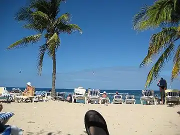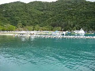 Labadee is a cruise ship port in Northern Haiti. It is a private resort leased by Royal Caribbean International (RCI) for use by its Royal Caribbean Cruise Line and Celebrity Cruise line cruise ships. Royal Caribbean International has contributed the largest proportion of tourist revenue to Haiti since 1986. The resort is completely tourist-oriented and safe as there is a personal security force. A controlled group of Haitian merchants are given sole rights to sell their merchandise and establish their businesses in the resort. The site is fenced off from the surrounding area. The cruise ships anchor either at the pier or offshore and passengers walk from the pier to dry land or are ferried to the resort when ships have to anchor offshore.
