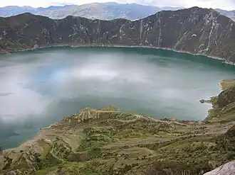Hike around the crater lake: 3½–4½ hours. It's only about 9.5 km but it's all up and downs. There are views of the Cotopaxi in the distance. The trail follows the rim of the crater passing through the Monte Juyende (3940 m), the highest of the hike's several view points. Beware, there are numerous paths and getting on the wrong ones may put you in danger; there are very narrow trails right over huge cliffs. You should get a map and review it with locals before you leave.