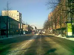 The city centre is less than ten minutes walk from the train station. Cross Mannerheiminkatu and travel north on Rautatienkatu. Pass the radio hill (with the tall legacy masts) on your left and the railway tracks behind you.