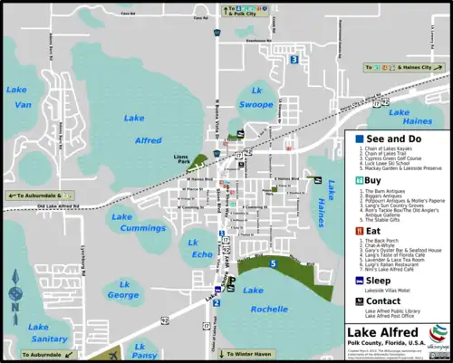 - 🌍 Lake Alfred Chamber of Commerce, 115 E Pomelo St (S side of Pomelo St, just E of NB U.S. 17/92.), ☏ +1 863 875-8700, fax: +1 863 875-8700.