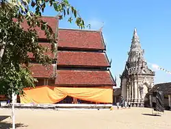 - 🌍 Wat Si Chum, Wat Si Chum Road. The temple has a small ceremonial hall in Burmese-style. The temple is the seat of a small community of monks from Burma.