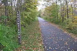 - 🌍 Ashuwillticook Rail Trail, Rt. 8. Old State Road (main entrance is at the Berkshire Mall Rd. junction with Rt. 8). A 10-foot wide, 11-mile paved rail trail path. The Ashuwillticook (ash-oo-will-ti-cook) Rail Trail runs parallel to Route 8 through the towns of Cheshire, Lanesborough and Adams. The southern end of the trail begins at the entrance to the Berkshire Mall off Route 8 in Lanesborough. The northern end is at Adams center. The trail passes Cheshire Reservoir, the Hoosic River, and several wetland habitats with abundant wildlife. Parking lots and restrooms are available along the way. A pamphlet with maps is widely available. Bicycles are welcome.