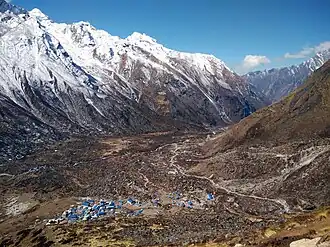 - π Thangshyap. (3205 m) A few houses and teahouses scattered around.