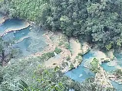 • Semuc Champey - Located about 7km outside of Lanquin, along rough road is a series of tiered limestone pools of varying shades of turquoise. A wild river runs underneath the pools here. Hike up to the mirador for a view pools. Swim in the pools and jump off of the rocks. (Feb 2023) Q25 for a pickup ride from Lanquín to Semuc Champey. The road is under construction to be replaced with a paved road, therefore, expect extra time to get there.