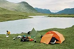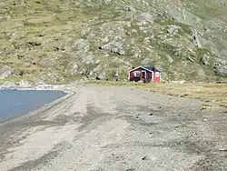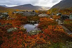 - Lake Guvtjávrre by the Nordkalottleden trail, with view to the Áhkká massif. A meeting place for Sámi, with possibility to buy bread and fish with some luck.