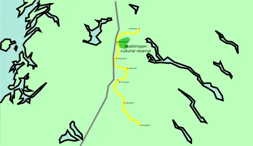 The route continues to the remote waypoint of Goeblejaevrie before reaching Atoklimpen cultural reserve. You can take a side trail to the summit of Atoklimpen at 1,006 m (3,301 ft), a sacred site for the Sami people.