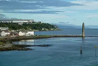 - 🌍 Chaine Memorial, 28 m tall, is a replica of an Irish Round Tower, a slim stone pencil with a conical top. It was completed in 1888 as a memorial to James Chaine (1841-1885), the shipping entrepreneur who established the modern port of Larne, and fostered its railway connections and trade link with Scotland. He was MP from 1874 until his early death. The Tower informally served as a day-mark, and in 1899 it was adopted as a lighthouse and fitted with a light, to help shipping steer clear of Hunter's Rock. (Five miles out in Belfast Lough, this rock is 4 m clear at low tide but submerged at high tide; it's marked with a buoy, but in 1878 the State of Louisiana was wrecked when the buoy became dislodged. The wreck is now a popular dive site, in 15-25 m depth.) Chaine himself was buried (and later joined by his family) in a fenced mound at the north end of the town park: the mound is so he could be buried upright facing the sea.