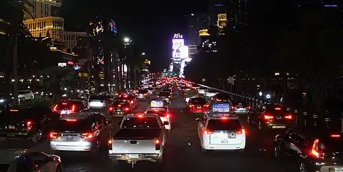 Remain vigilant while driving. Las Vegas Boulevard ("the Strip") is notorious for fender benders and other traffic collisions as a result of the heavy stop-and-go traffic and the numerous distractions (electronic signage and water fountains) visible to drivers.