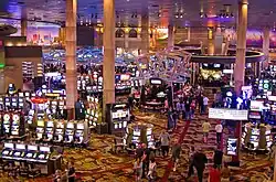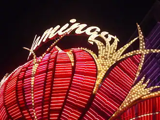 Inside hotels and casinos (the terms are interchangeable), expect to see myriads of slot machines, and gambling from card games to craps and roulette to sports betting. Hotel casinos often have a certain theme, and is decorated and sometimes features attractions to that theme, like the flamingo garden in Flamingo.