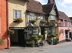 Lavenham, is a village in the south-west corner of Suffolk. It is one of the finest examples of a medieval wool town. Most of the houses were built between 1450 and 1500 and are in a remarkable state of preservation. Walking through Lavenham is like walking through a movie set: the half-timbered houses and pastel coloured cottages lean against one another in street after street.