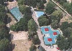 - Thermal swimming pool (Hu:Termálfűrdő. Loc: Móricz Zsigmond út 142. Phone: +36 26 383370 +36 70 3394794, Opening hours: daily 06:00-19:00. Full day adult Ft1850 (2014)),