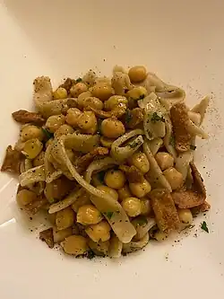 Pasta and chickpeas (ciceri e tria) has become the symbol of Salento cuisine, consisting in wide noodles similar to tagliatelle fried in olive oil and boiled in a pot with chickpeas and vegetables soup. Taste the puccia, a bread made of durum wheat flour and popular bread-based snacks including the uliata (sticks filled with black olives) and the pizzu (filled with olives, tomato and eventually onions and slices of pepper), with different possible varieties. An appreciated street food is the rustico, a savory pastry of circular shape made of puff pastry sheets filled with tomato sauce, mozzarella and béchamel sauce. Another typical dish are the bulbs of tassel hyacinth, called lampascioni and usually enjoyed in oil. Another popular street food are the pittule, yeast dough fried in oil, sometimes filled with onions, tomatoes, capers, black olives, salted anchovies, and hot red pepper (alla pizzaiola) or tasted hot with splash of nutella cream.