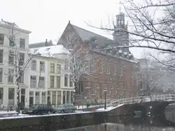 - π Hooglandse Kerk. Dedicated to St Pancras and located at the site of an earlier wooden chapel dating from 1314. Construction started in 1377 but parts the building were left lower than had been planned when construction was halted in the 16th century. Houses were built against its walls during the 17th century. Inside you can find a lying tombstone belonging to the tomb of Justinus van Nassau, illegitimate child of William of Orange.