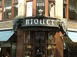 - 🌍 Riquet, Schuhmachergäßchen 1 (city centre), ☏ +0341 9 61 00 00. 09:00–20:00. Built in 1908-09. Two copper elephant heads guard the entrance. The interior is put under preservation and has been restored to its original glory in the 1990s. Wide selection of cakes and gateaux.