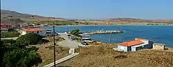- 🌍 Plati Beach (2 km south-east of Myrina). One of the most popular beaches in Lemnos, directly below the village Plati. This beautiful beach stretches for about 700 m and offers various tourist facilities, including sun loungers and parasols. There are cafes, bars and a water sports centre with training lessons and equipment for all age groups. The water is clean and flat, ideal for children. Some large trees provide good shade in hot summer days. Nearby there are taverns and accommodation for every budget.