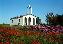 - 🌍 Pedino/Nea Koutali. Near these villages is a very interesting peninsula with some sights. The 🌍 church Ag. Nikolaus is very picturesque on a small island, which is connected by a dam to the peninsula . At the end of the peninsula is a 🌍 stone pyramid from the First World War from which you have a good view of the bay. The way there is a bad dirt road. The Russian Cemetery is also worth a visit there.