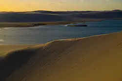The shifting dunes with the lakes in between are most spectacular at low sun, when a range of shadows come into play. Just after sunrise is probably thev very best because of lower temperatures. Besides the vast sand dunes, the park includes two oases, known as restingas and has areas of mangrove swamps along 70 km of coastline and wetlands along the Parnaíba River.