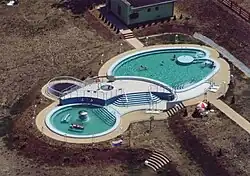 - 🌍 Letenye Thermal Bath (Letenyei strand- és termálfürdő), Platánfa utca 1, ☏ +36 30 520-4052, info@ekkov.hu. Jun 15–Aug 31: 10:00–20:00. Located in the Park of Szapáry castle. 50 °C (122 °F) thermal water. 33 m (108 ft)×20 m (66 ft) large swimming pool, a circular children's pool, volleyball and football fields. Adult: 1300 Ft; youth, senior: 900 Ft; children: 700 Ft. Discounts after 17:00.