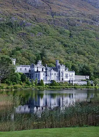 - π Kylemore Abbey & Victorian Walled Gardens, Pollacappul H91 VR90, β +353 95 52001. Daily 10AM-6PM. The castle is a grand cod-Gothic affair built from 1867 with a Manchester textile fortune. Its estate included much of what is now the National Park. In 1920 it was bought by a community of Benedictine nuns who'd been evacuated from Ypres during the First World War, and it's been an abbey since then. It was also a school, but that closed in 2010. You park at its visitor centre then a shuttle bus takes you on. Only a few rooms of the castle / abbey are on display, plus the church and family mausoleum. The big attraction is the extensive gardens, which take an hour or two to explore. Adult β¬18, conc β¬15.50, child under 12 free.