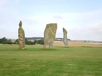 - π Lundin Standing Stones are three unsculpted stones 4-5 metres tall that were once part of a large circle. They're hidden away on the links behind Leven Rd, resembling a Pictish golf hazard.