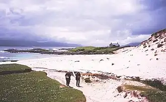 - 🌍 The Temple is the ruin of a chapel of 1528. The machair headland covers prehistoric settlements, which are being exposed by erosion then lost to the sea.