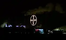 - 🌍 Bayer-Kreuz, Friedrich-Ebert-Straße/Willy-Brandt-Ring (Bus "CHEMPARK Tor 1"). 51-metre-high logo of the Bayer chemical and pharmaceutical company; illuminated at night.